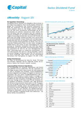 Monatsbericht August 2025 des zCapital Swiss Dividend Funds (A-Klasse)
