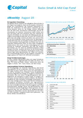 Monatsbericht August 2025 des zCapital Swiss Small & Mid Cap Funds (A-Klasse)